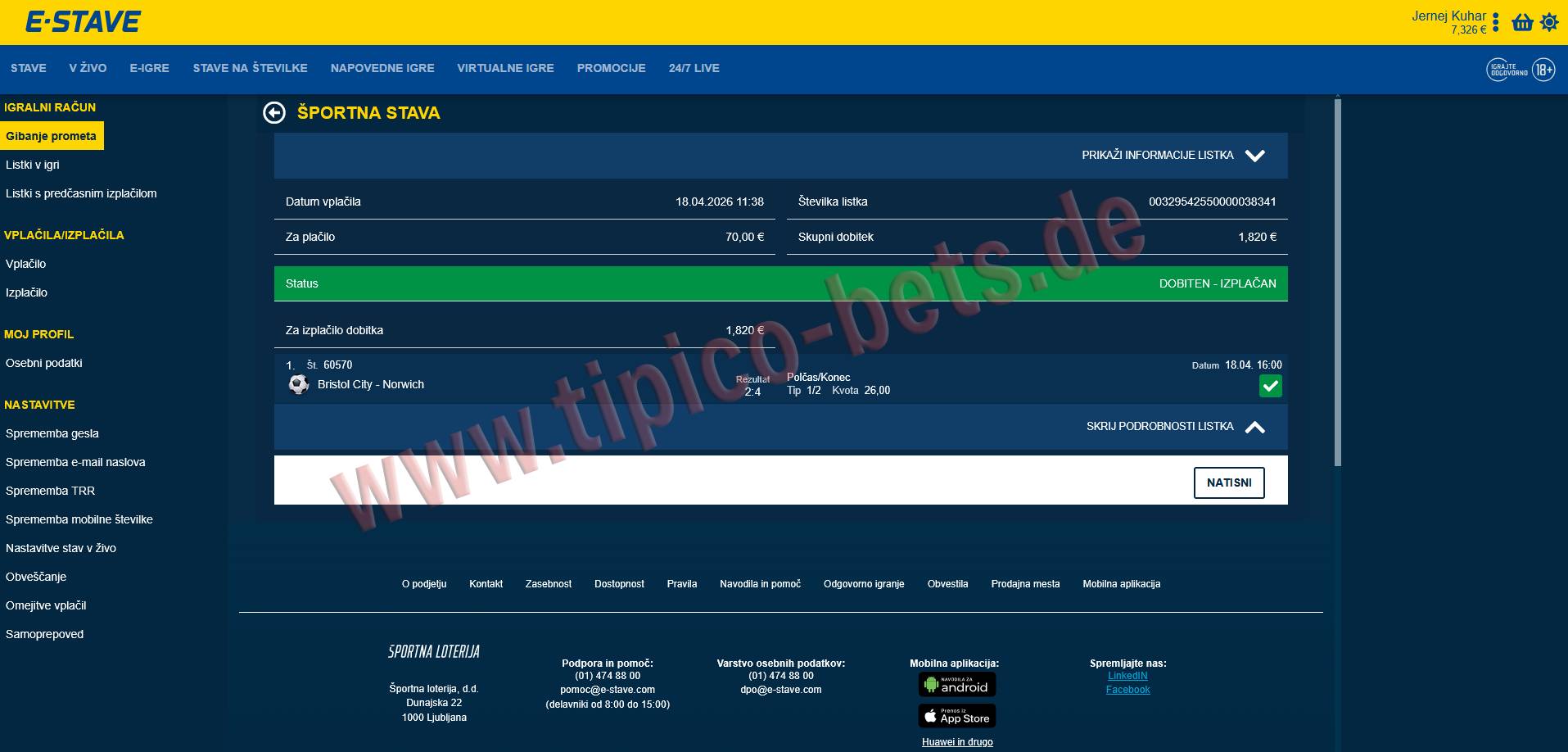 Recent Highlight: Our latest win featured a massive 30.00 odd on a perfect 2:1 correct score prediction!